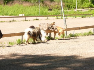 Söndagens väder var perfekt för att njutningsfullt kunna iaktta kommunikationen hundarna emellan. Hundar av olika ras, kön, ålder och storlek träffades och umgicks. Detta är verkligen hundarnas egen kurs! Och vi kan bara njuta frukterna av alla dessa välfungerande och harmoniska hundar.